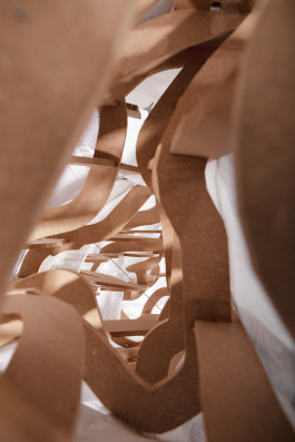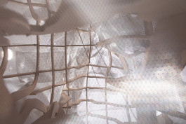 The resulting form is a set of points distributed in space in a manner incapable to achieve by traditional geometry. It is a representation of a representation. As an architectural operation, the traditional process is completely reversed- the form comes first and the drawings for structure are forced to follow. Grids, lines, and ideal geometry are placed within the form to give it structure and support.